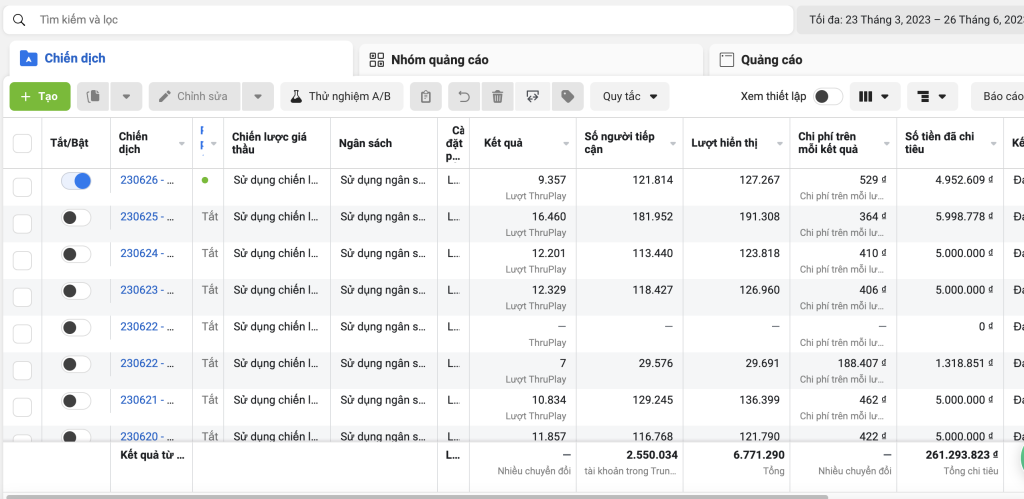• Theo dõi hàng ngày các chỉ số: CTR, CPC, CPA, ROAS, tỷ lệ chuyển đổi.