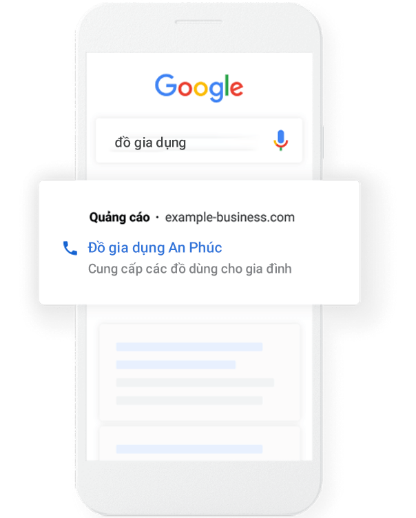 Quảng cáo tìm kiếm là hình thức quảng cáo hiển thị ngay trên trang kết quả Google khi khách hàng gõ từ khóa liên quan đến sản phẩm/dịch vụ của bạn.